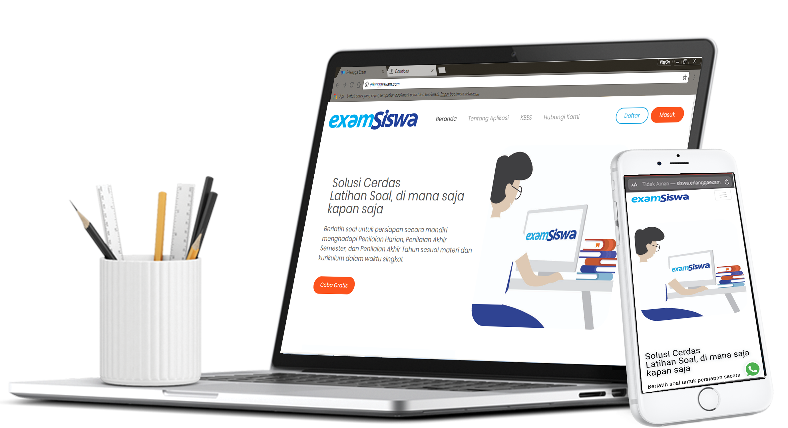 Anda tidak perlu khawatir akan memunculkan soal yang sama, karena soal-soal yang ada di Exam Siswa ribuan dan bervariatif. Selain itu, tingkat kesulitan soal dapat Anda atur sendiri.